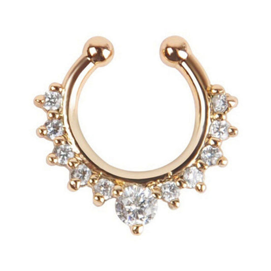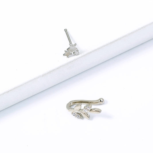 Jewelry Copper Micro-inlaid Zircon Leaf Nose Nail False Nose Ring