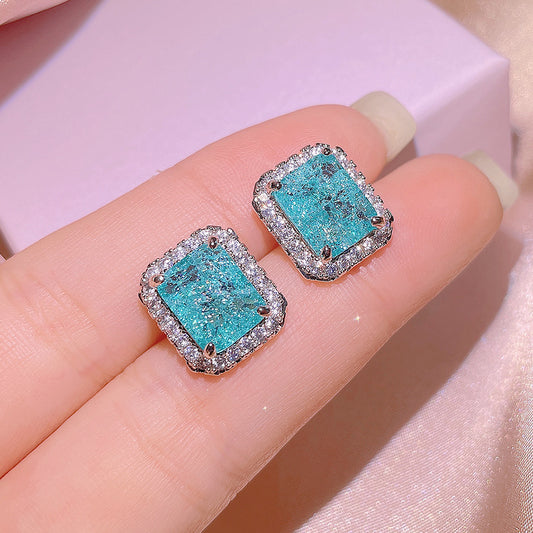 Simulation Paraiba Rings Ear Studs Necklace Suit